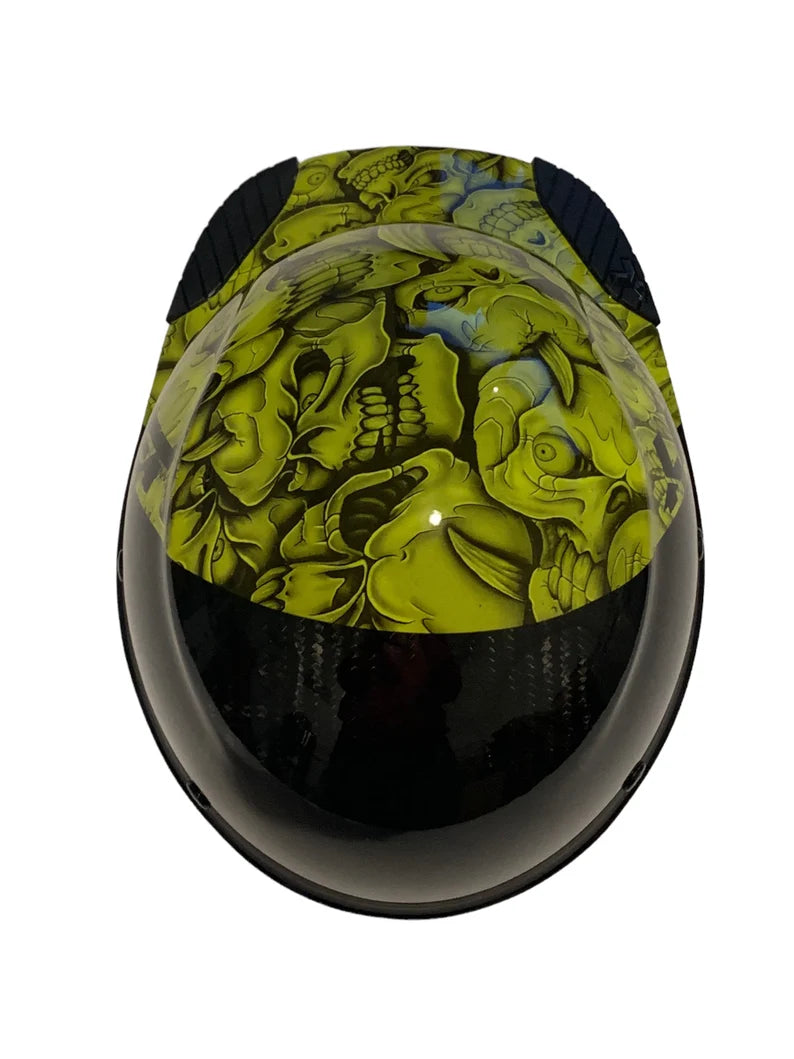 Custom Hydro Dipped Black and HiVis Green Insanity Skulls Lift DAX Fifty 50 Carbon Fiber HDC50C-19OC Cap Style Hard Hat