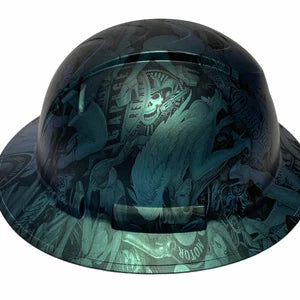 Custom Hydro Dipped Hard Hat Blue Green Chameleon Naughty Boy Full Brim Ridgeline