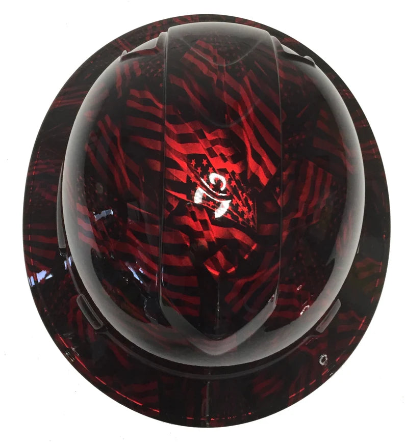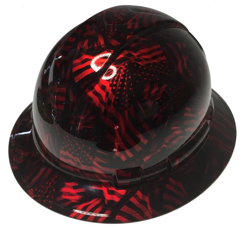 Custom Hydro Dipped Hard Hat Kandy Red Negative American Flags Full Brim Ridgeline