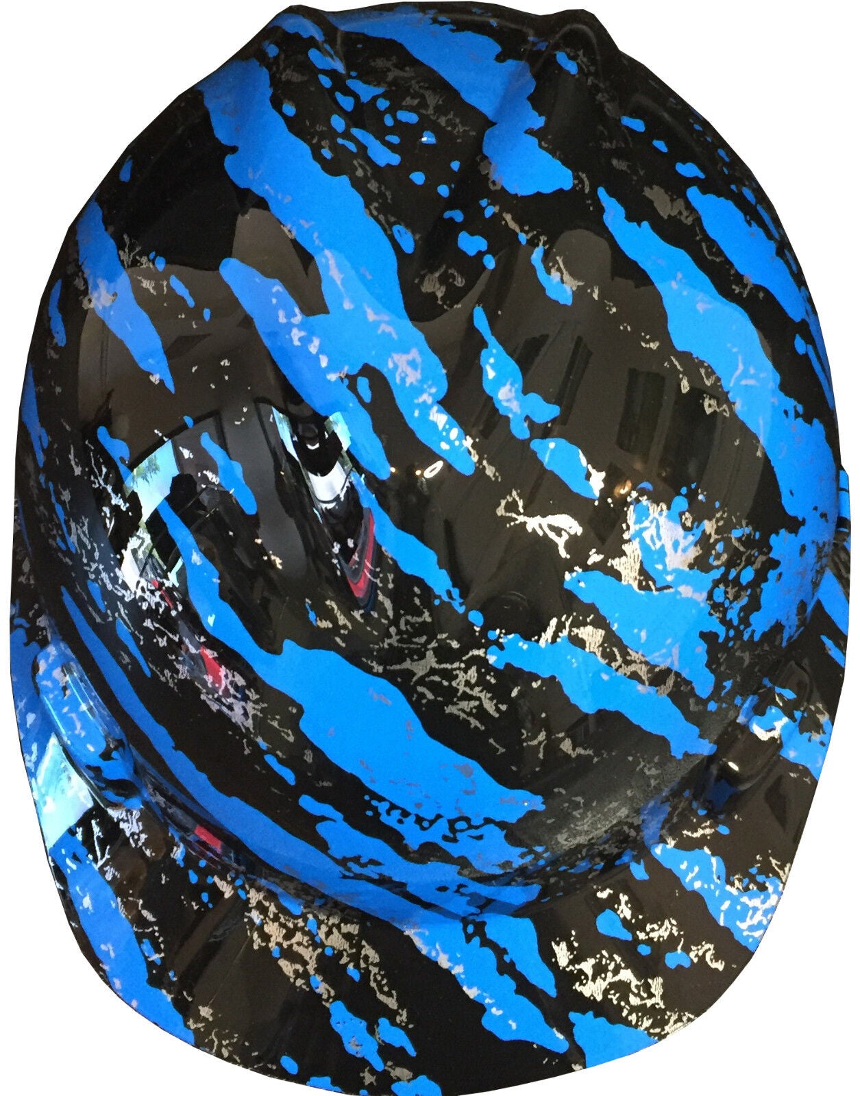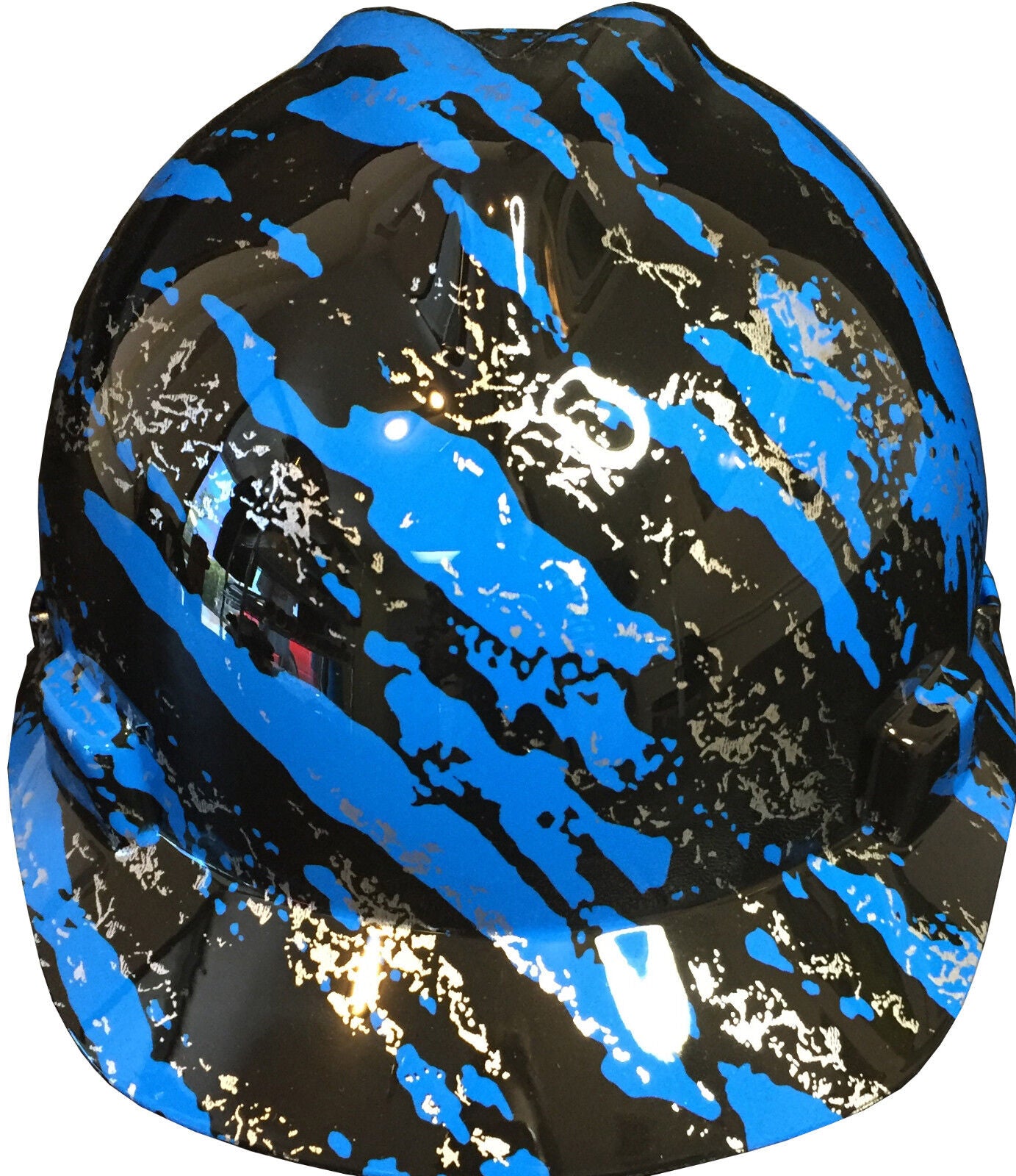 Custom Hydro Dipped Hard Hat MSA Cap Style Blue Marble Splash High Gloss