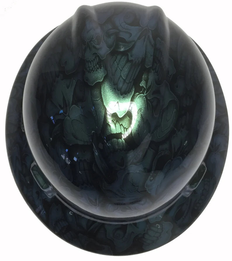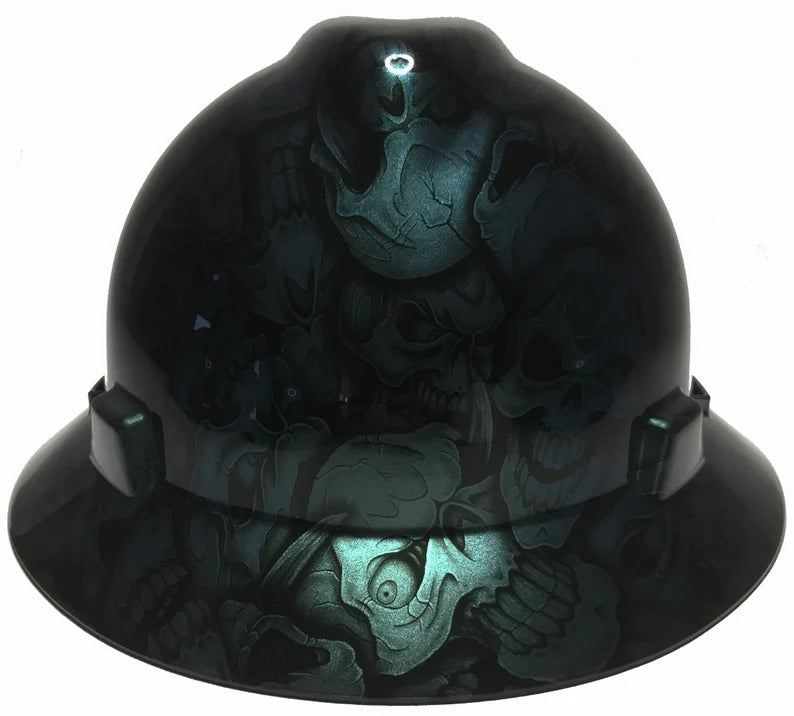 Custom Hydro Dipped Hard Hat MSA V-Gard Full Brim Blue Green Chameleon Insanity Skulls