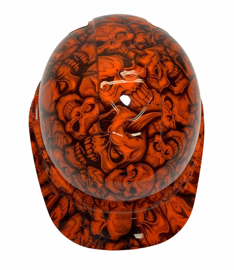 Custom Hydro Dipped Hard Hat Ridgeline Cap Style Custom Orange Insanity Skulls
