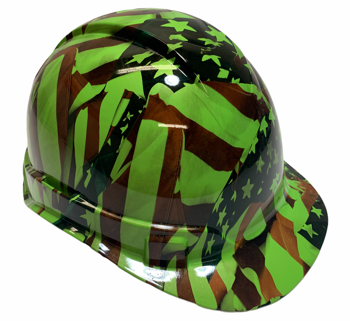 Custom Hydro Dipped Hard Hat Ridgeline Cap Style Green American Flags