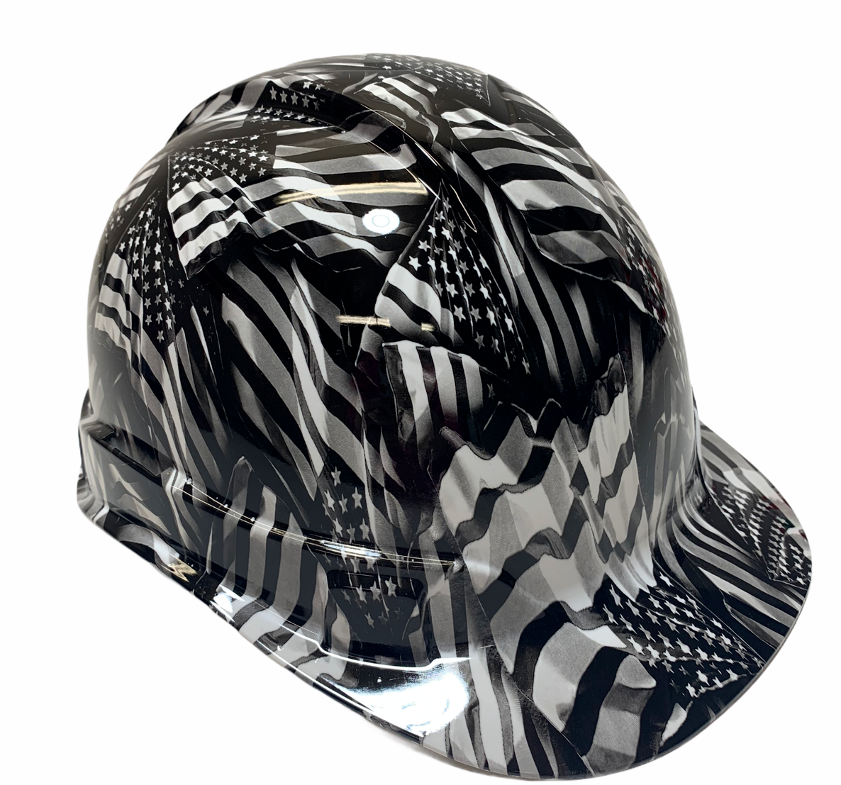 Custom Hydro Dipped Hard Hat Ridgeline Cap Style Green American Flags
