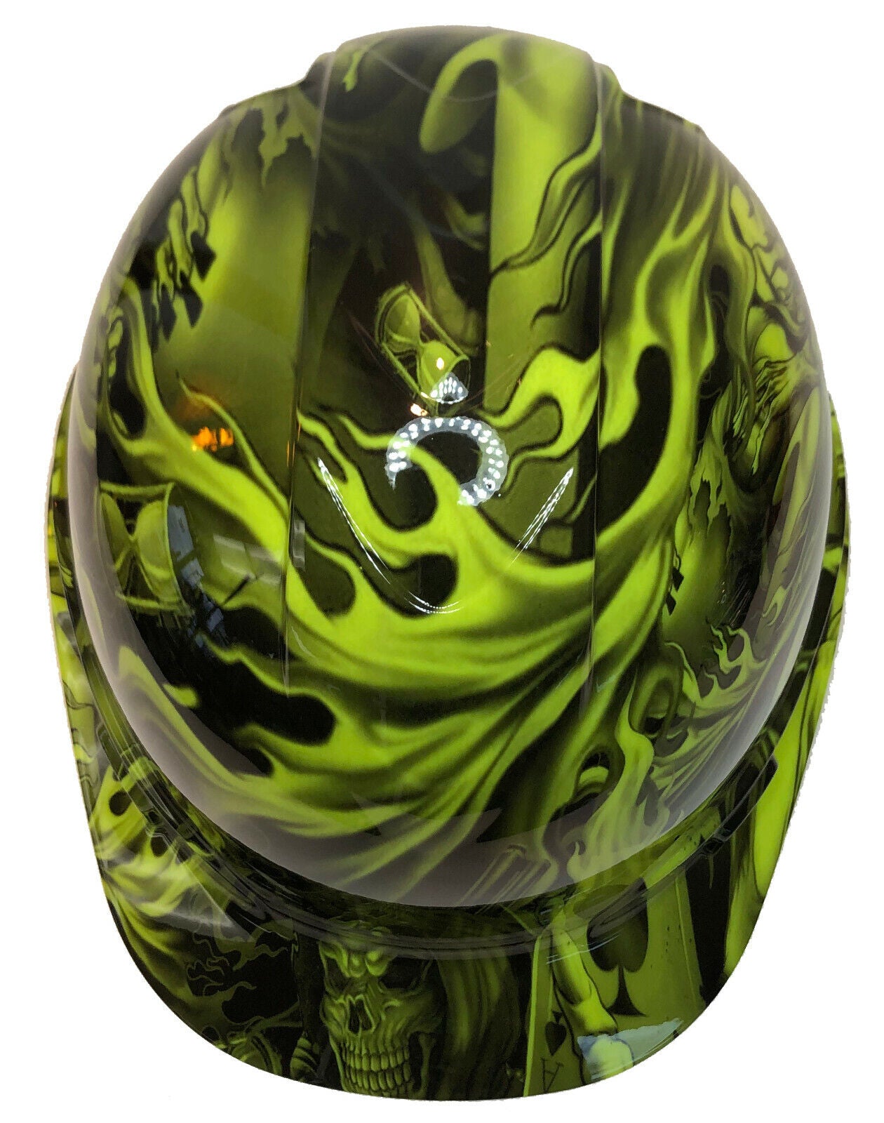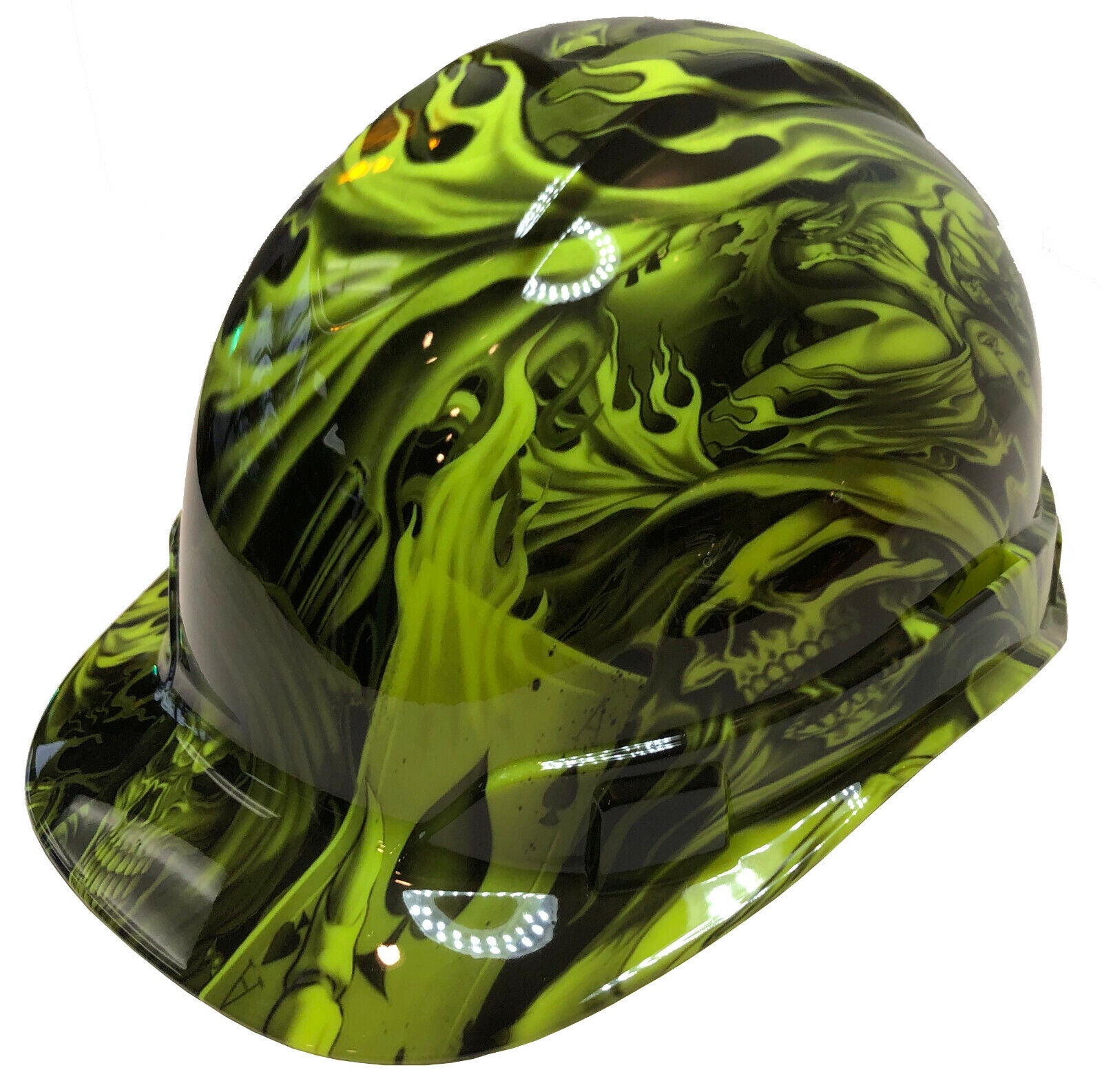 Custom Hydro Dipped Hard Hat Ridgeline Cap Style Hi Vis Green Ace Of Skulls
