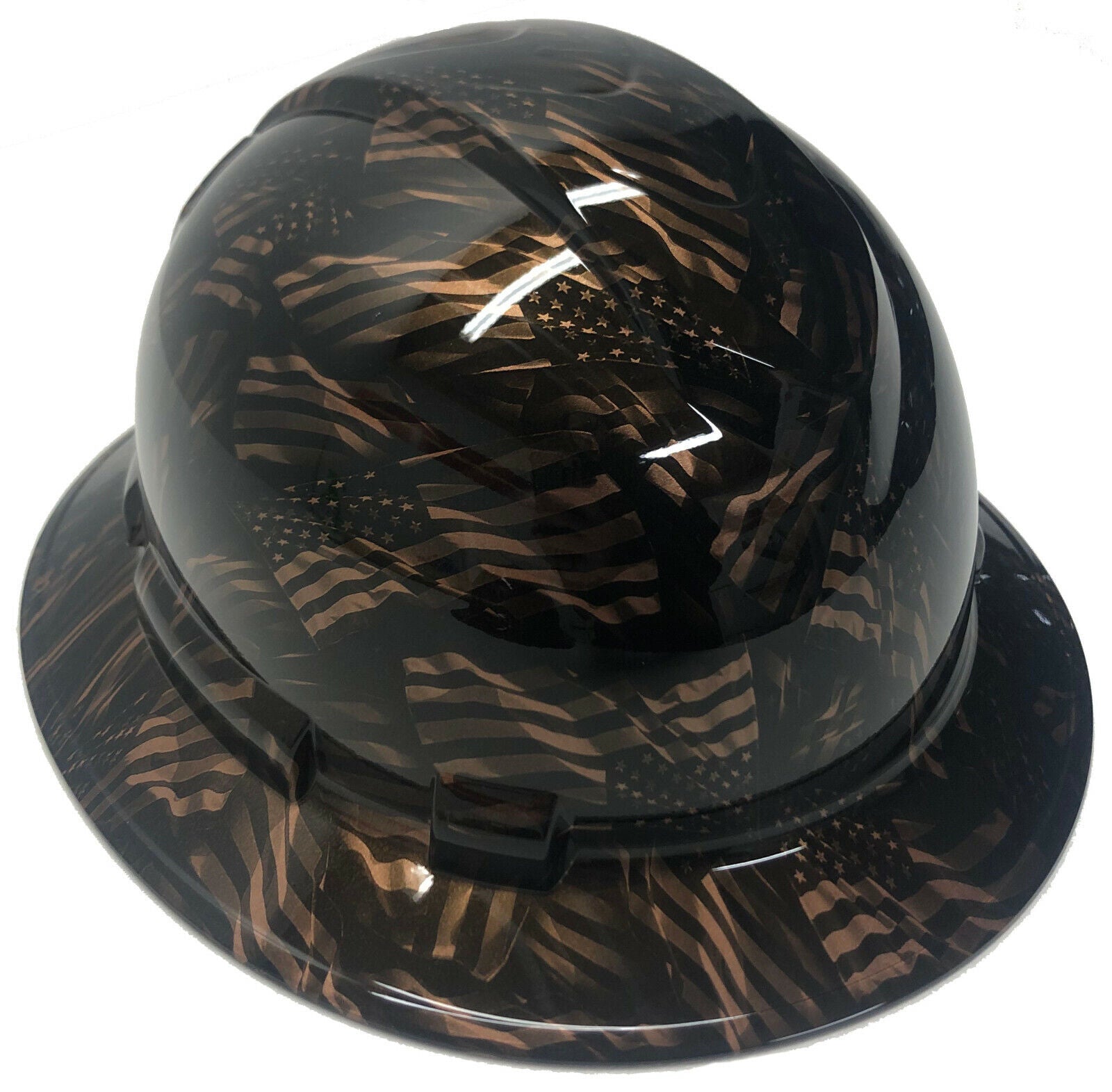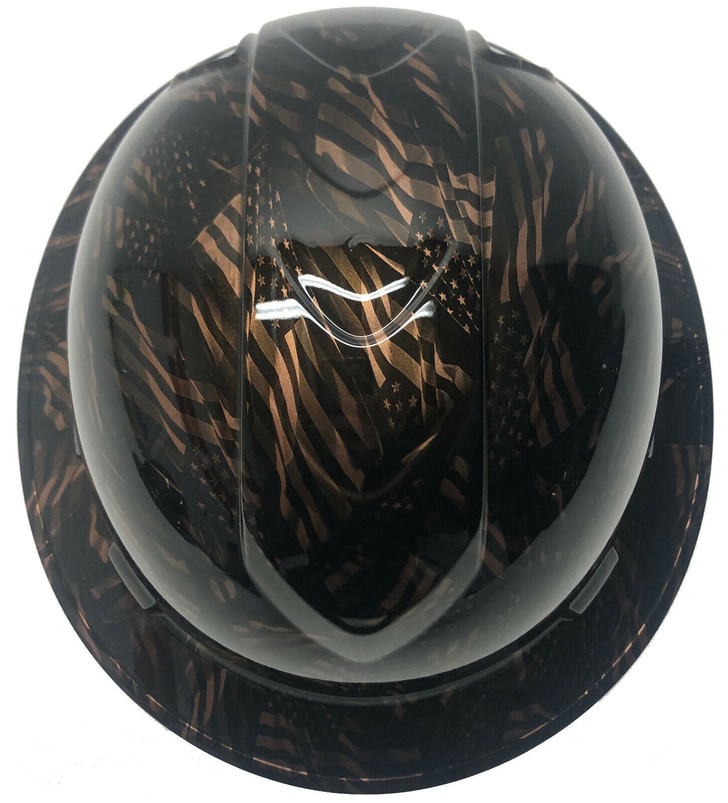 Custom Hydro Dipped Hard Hat Ridgeline Full Brim Copper Metallic Negative American Flag