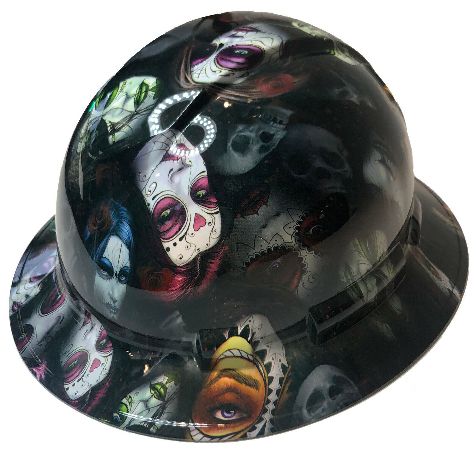 Custom Hydro Dipped Hard Hat Ridgeline Full Brim Day Of The Dead Sugar Skulls