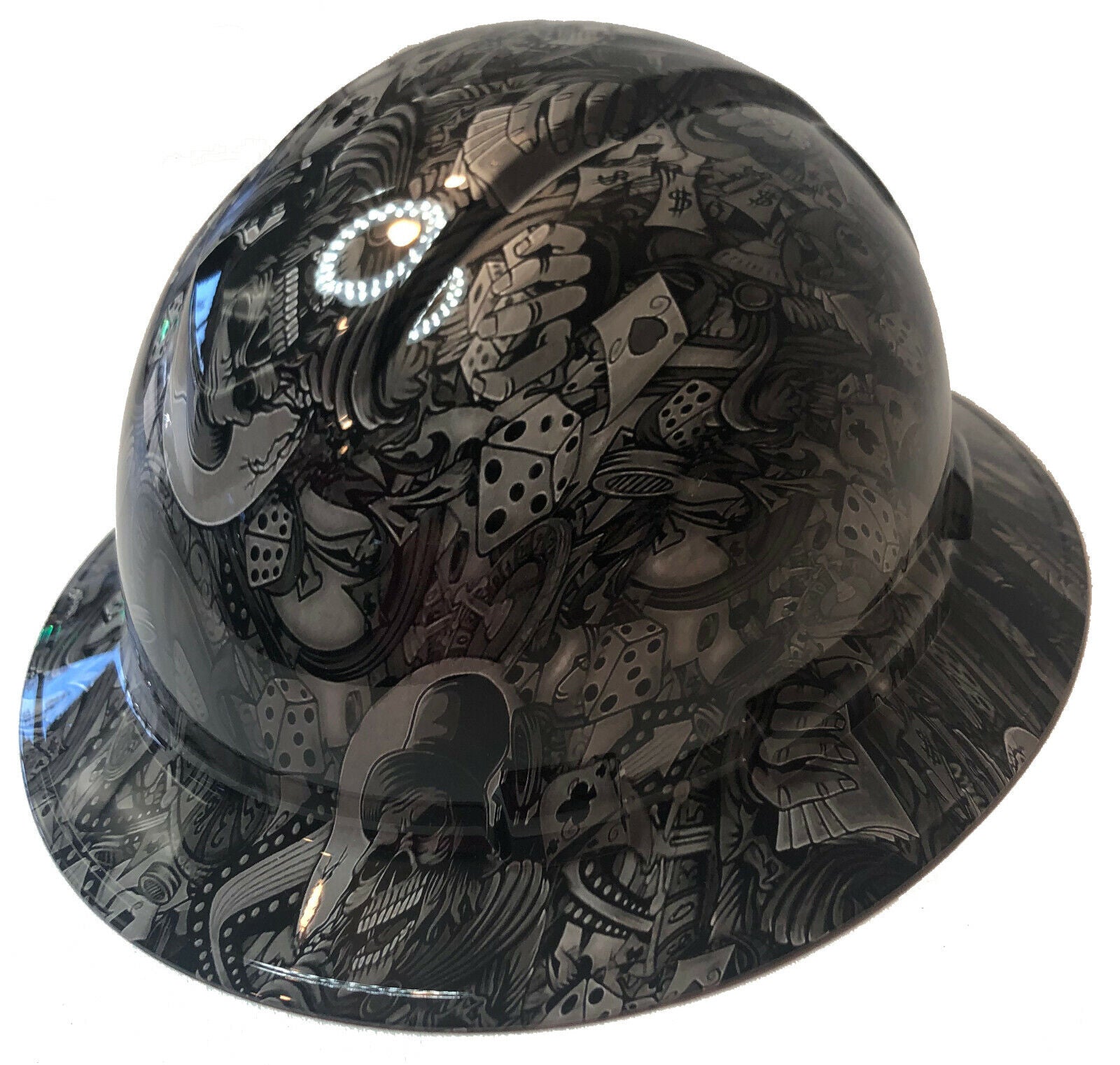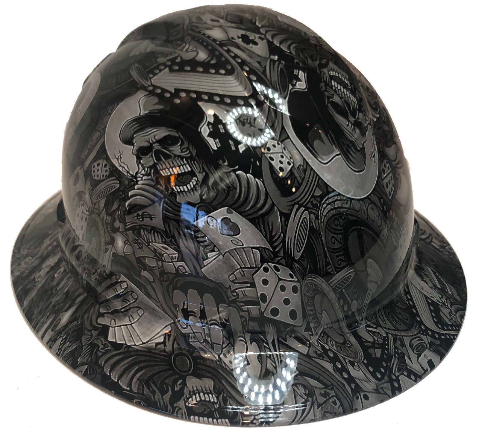 Custom Hydro Dipped Hard Hat Ridgeline Full Brim Light Gray Gambler