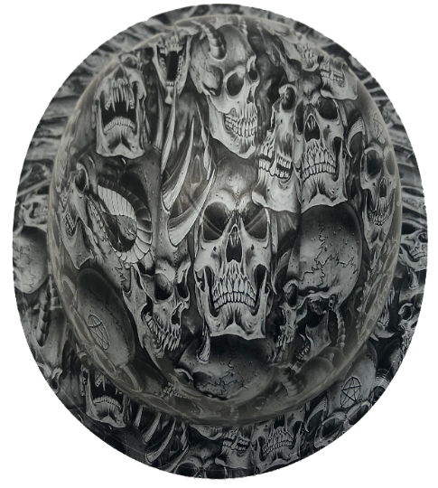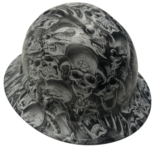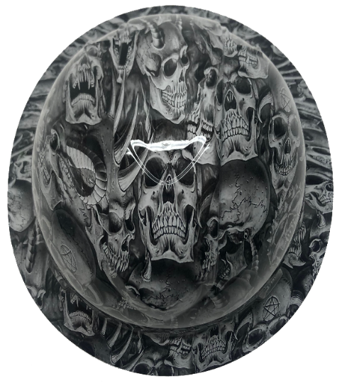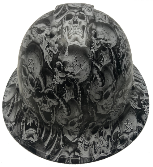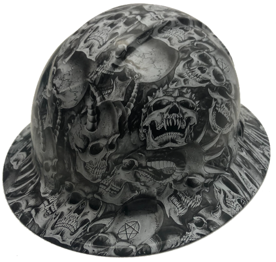 Custom Hydro Dipped Hard Hat White Demented Skulls Full Brim Ridgeline