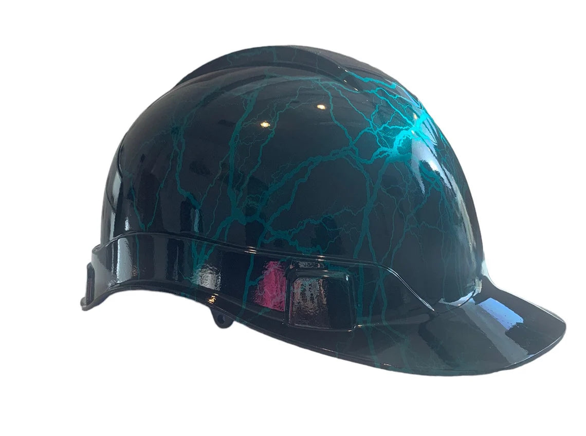 Custom Hydro Dipped Kandy Blue Green Lightning Hard Hat Ridgeline Cap Style