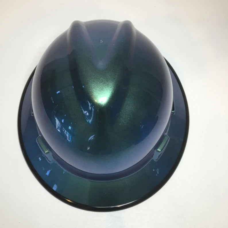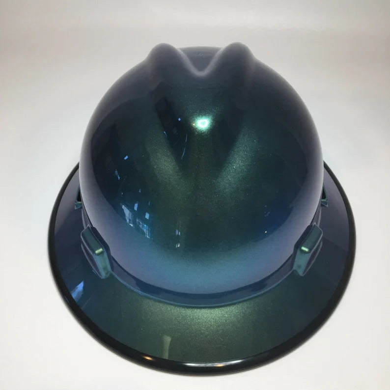 Custom Painted Hard Hat Blue Green Chameleon with Black Edgegard MSA Full Brim