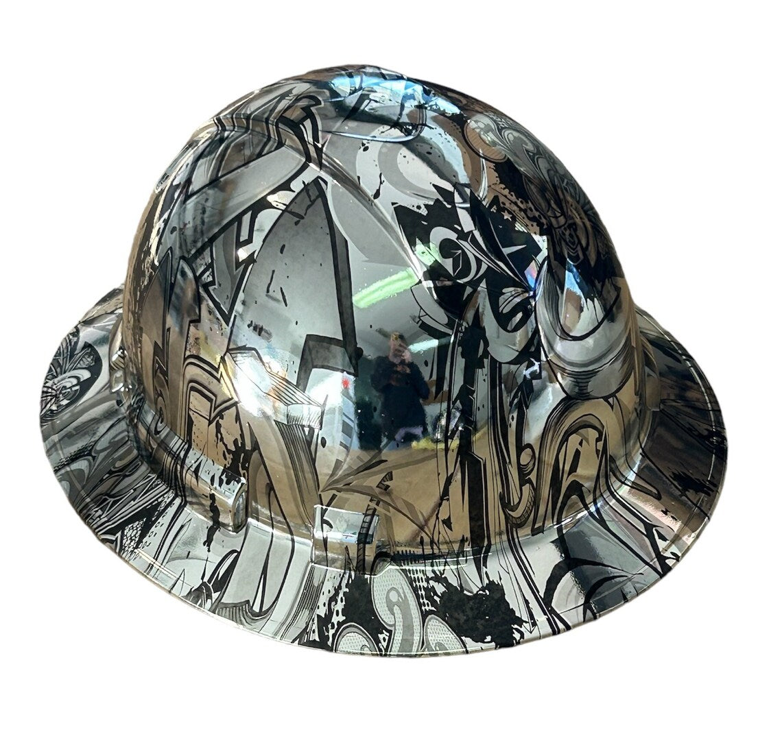 Custom Ridgeline Full Brim Hard Hat Chrome Graffiti