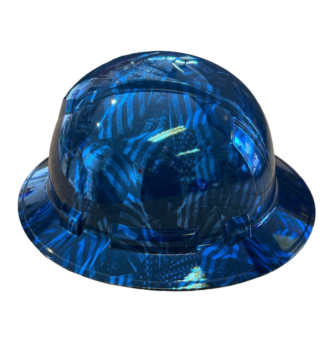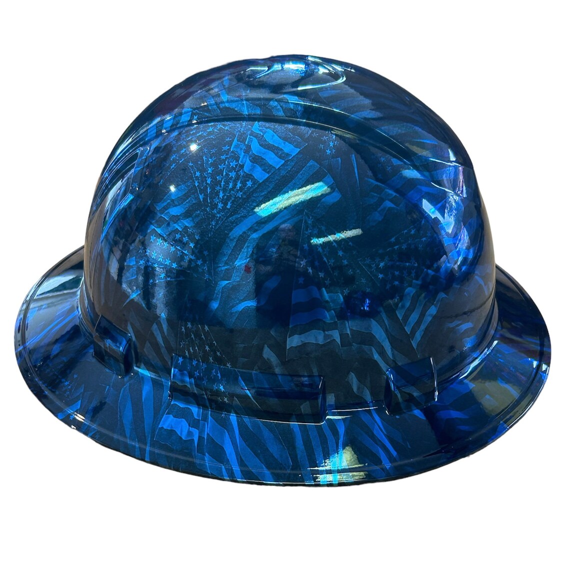 Custom Ridgeline Full Brim Hard Hat Chrome Kandy Blue Negative Flags