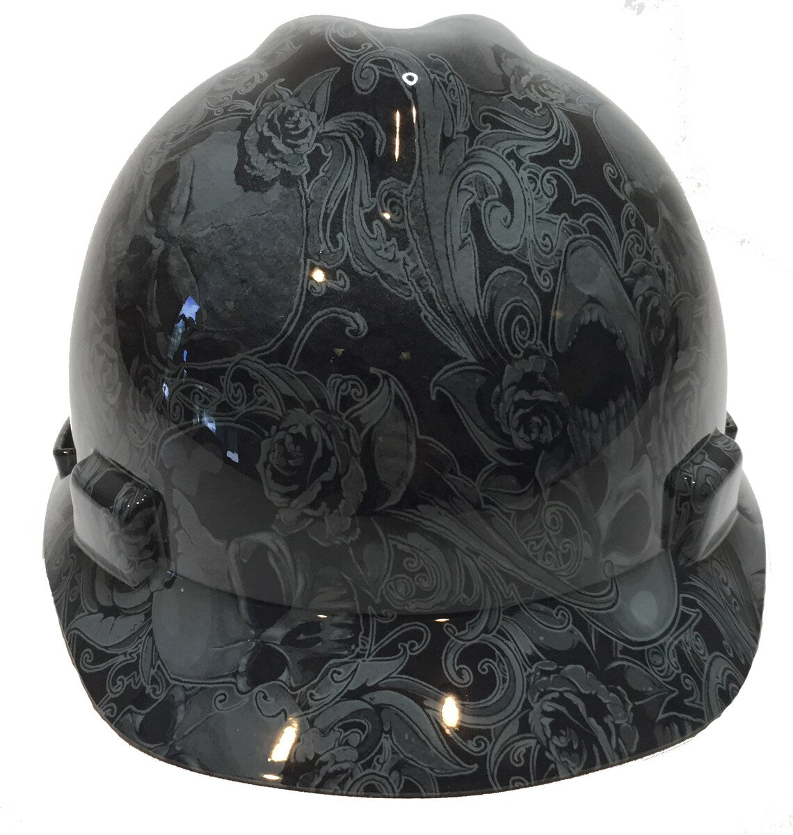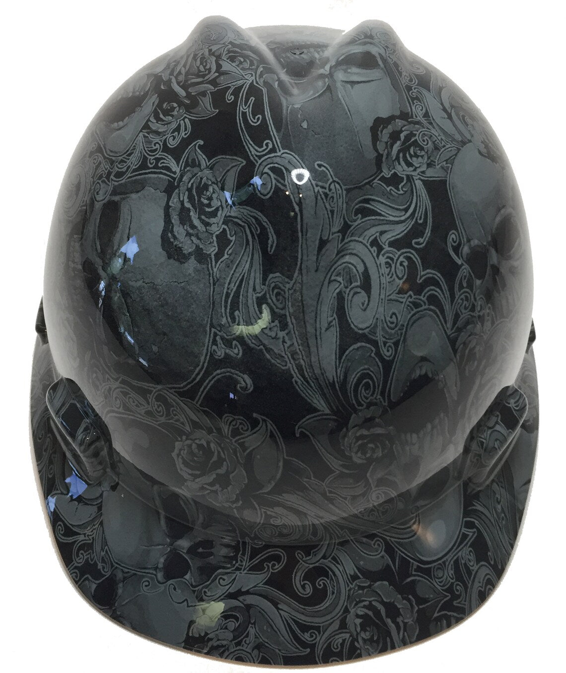 Hard Hat MSA V-Gard Cap Style Custom Gray Filigree Skulls