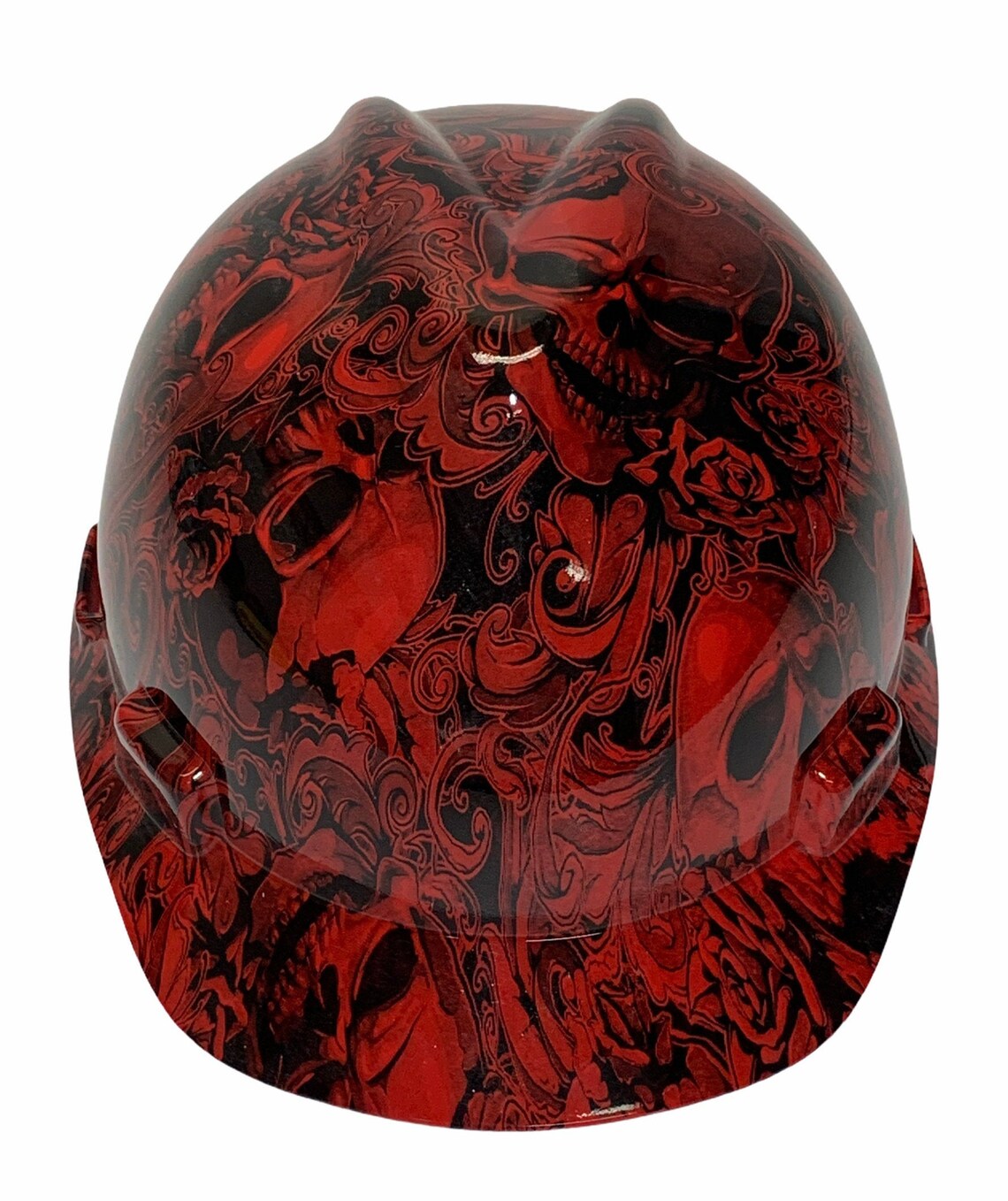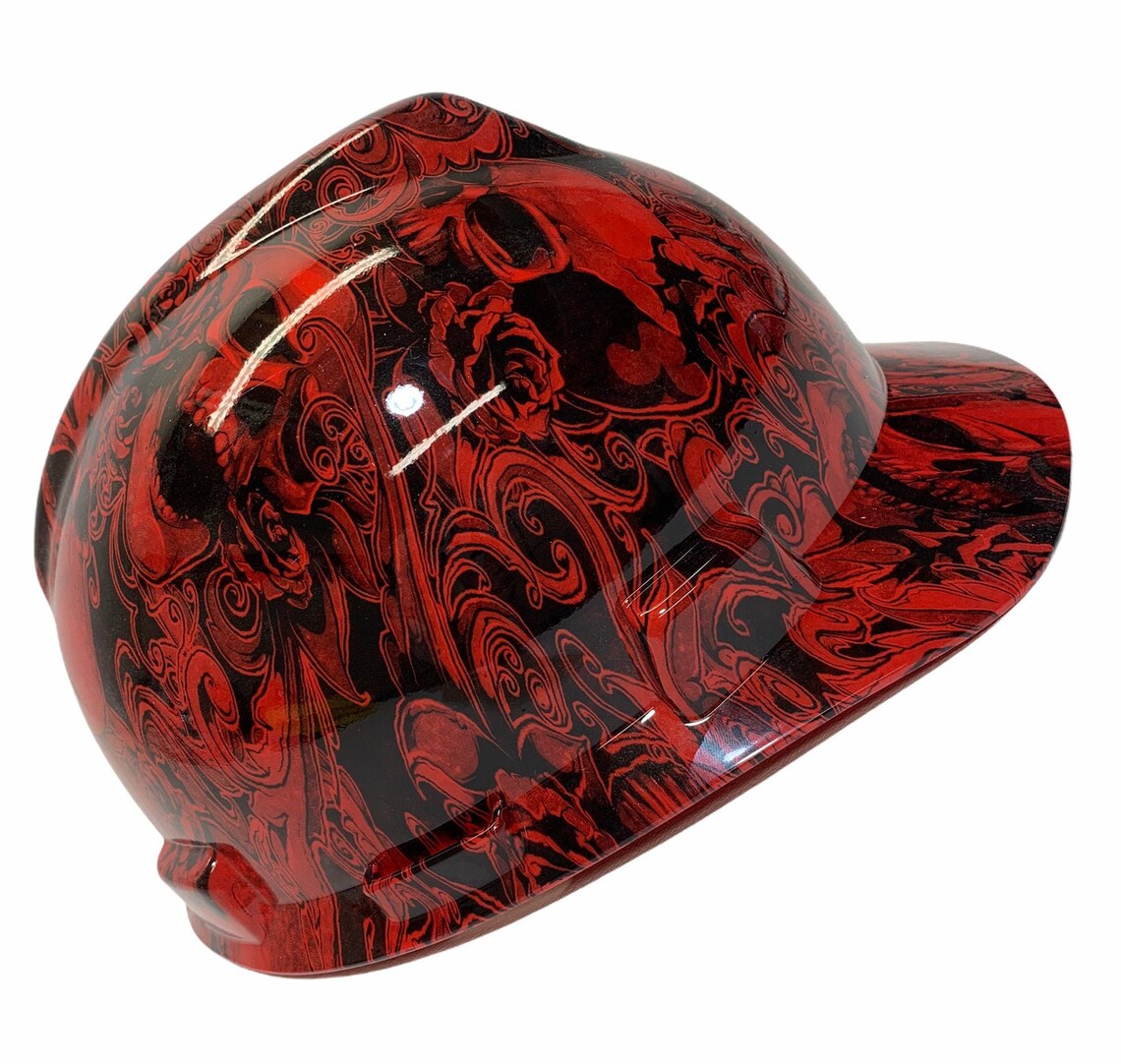 Hard Hat MSA V-Gard Cap Style Custom Red Filigree Skulls Hydro Dipped