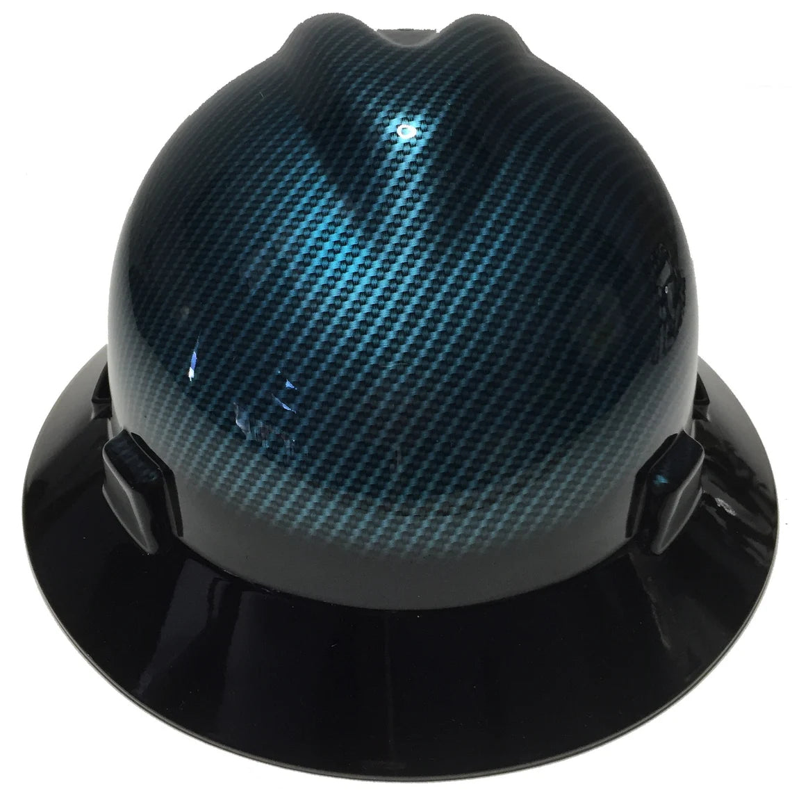 Hard Hat MSA V-Gard Full Brim Custom Hydro Dipped Light Blue Kandy Carbon Fiber With Black Brim