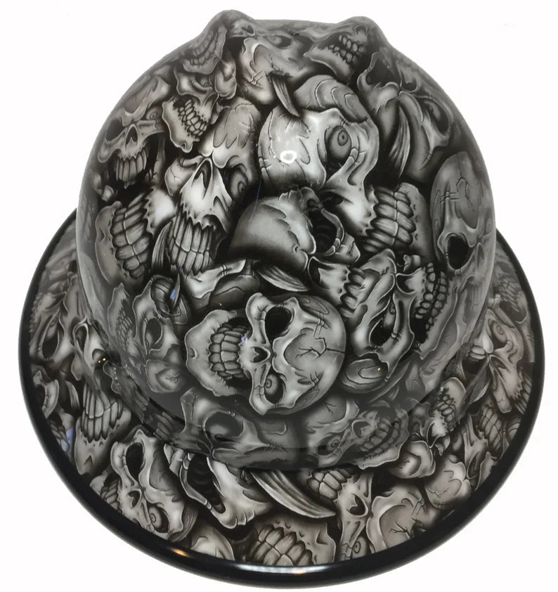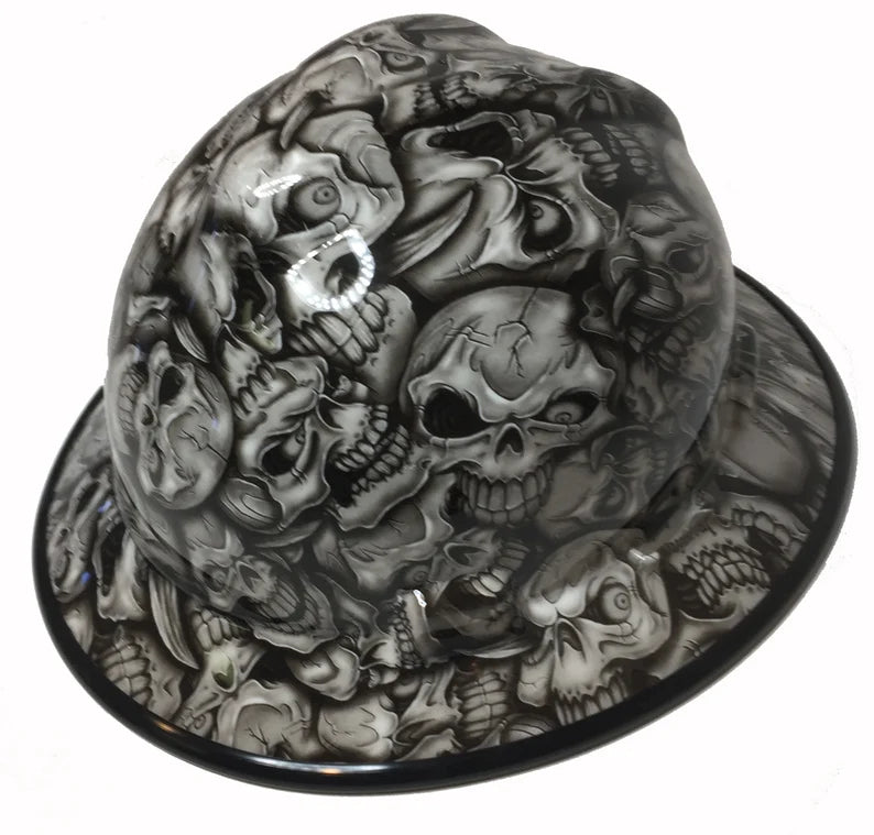 Hard Hat MSA V-Gard Full Brim Custom White Insanity Skulls with Black EdgeGard