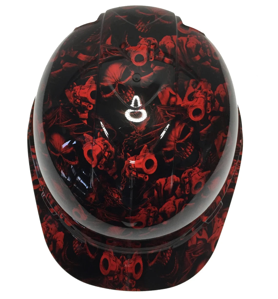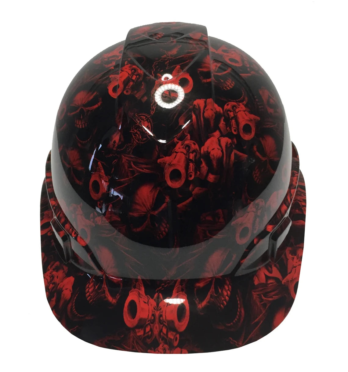 Hard Hat Ridgeline Cap Style Custom Red Gangster Skulls