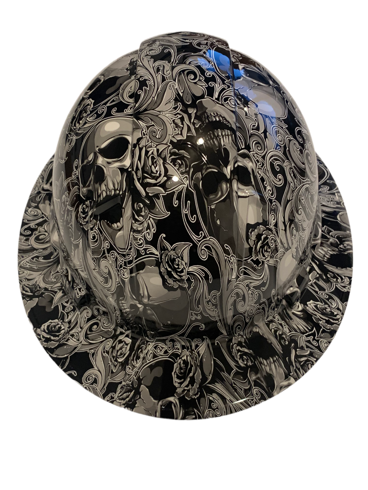 Hard Hat Ridgeline Full Brim Custom HydroDipped White Filigree Skulls