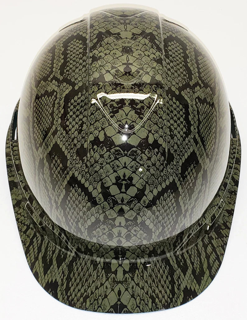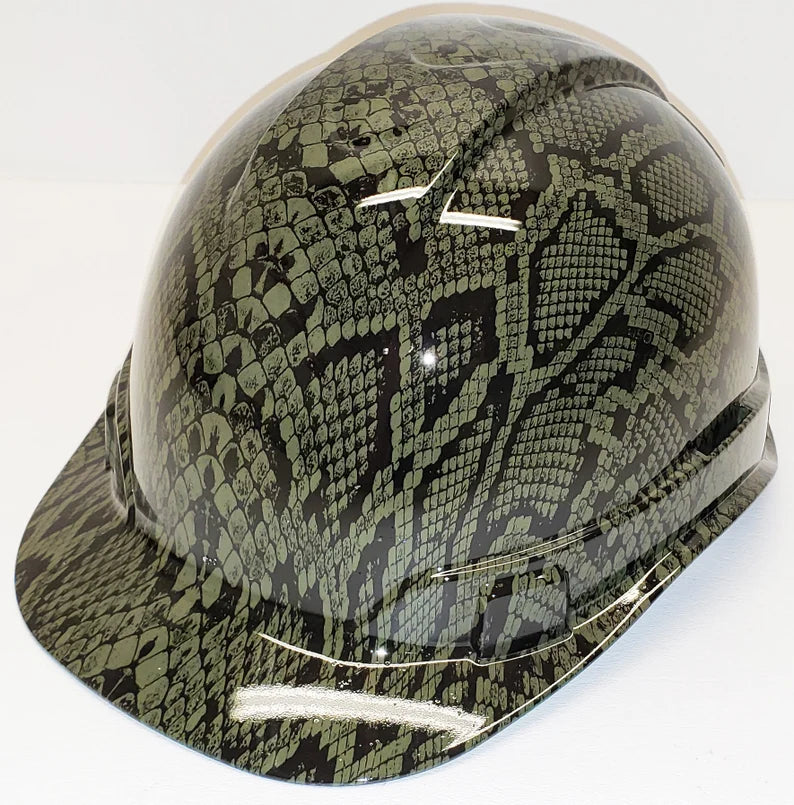 Hydro Dip Hard Hat Green Snake Skin Pyramex Ridgeline Protective Helmet