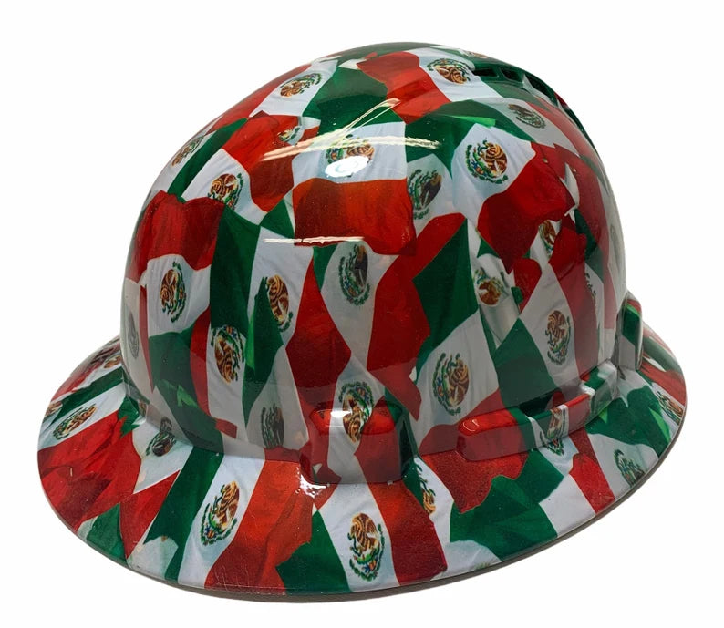 Hydro Dip Mexico Flag Lift Briggs HBFC-7G Full Brim Vented Hard Hat
