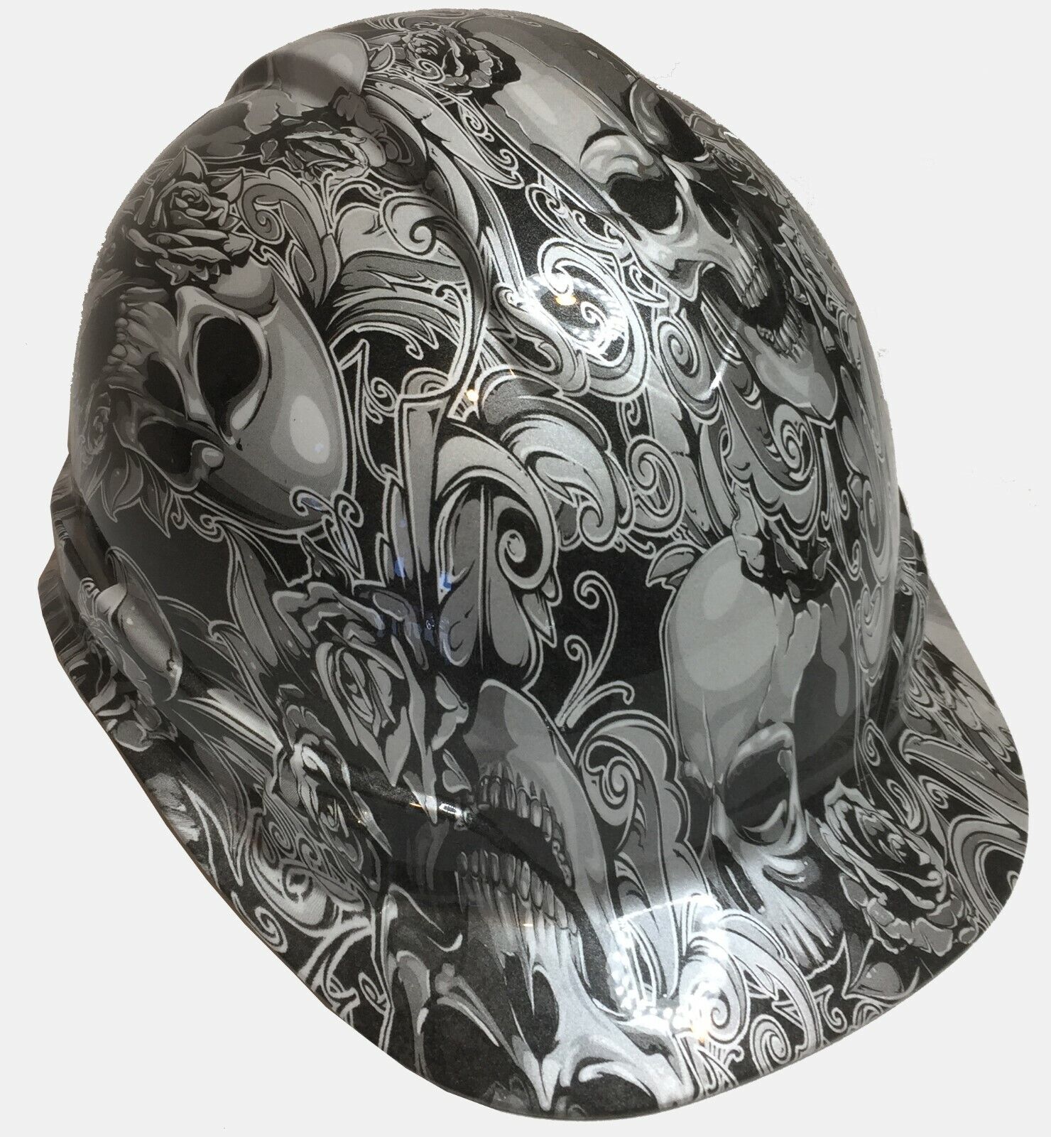 Hydro Dipped Custom Hard Hat Ridgeline Cap Style Pearl White Filigree Skulls