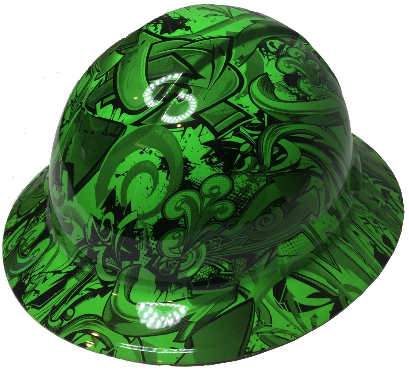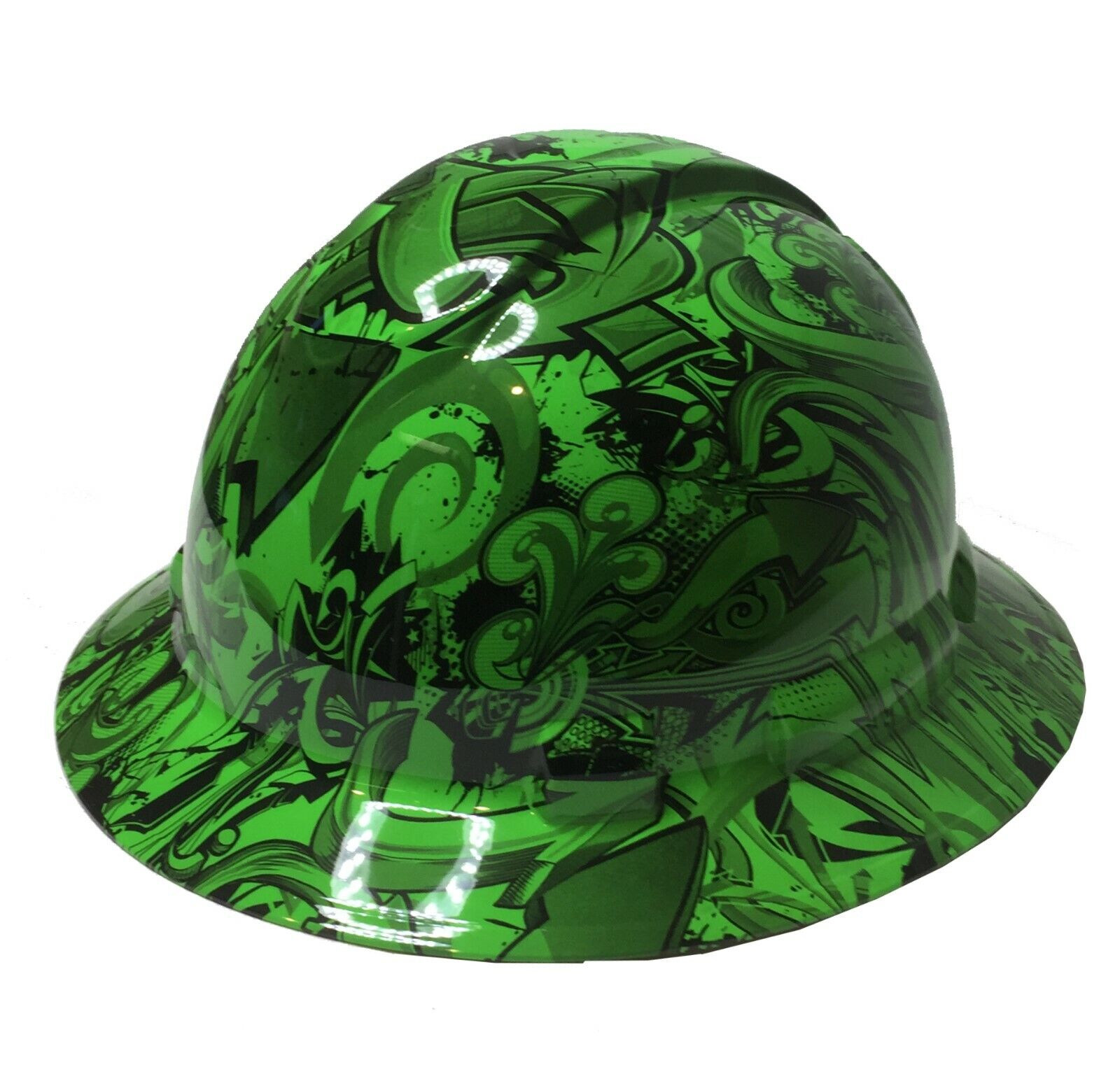 Hydro Dipped Custom Hard Hat Ridgeline Full Brim Custom Alien Green Graffiti