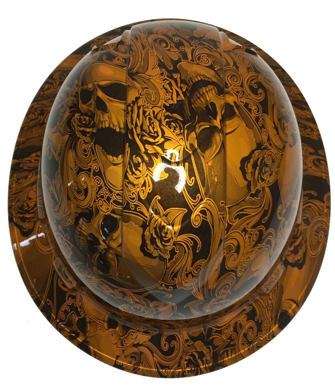 Hydro Dipped Custom Hard Hat Ridgeline Full Brim HOK Sunset Pearl Filigree Skull