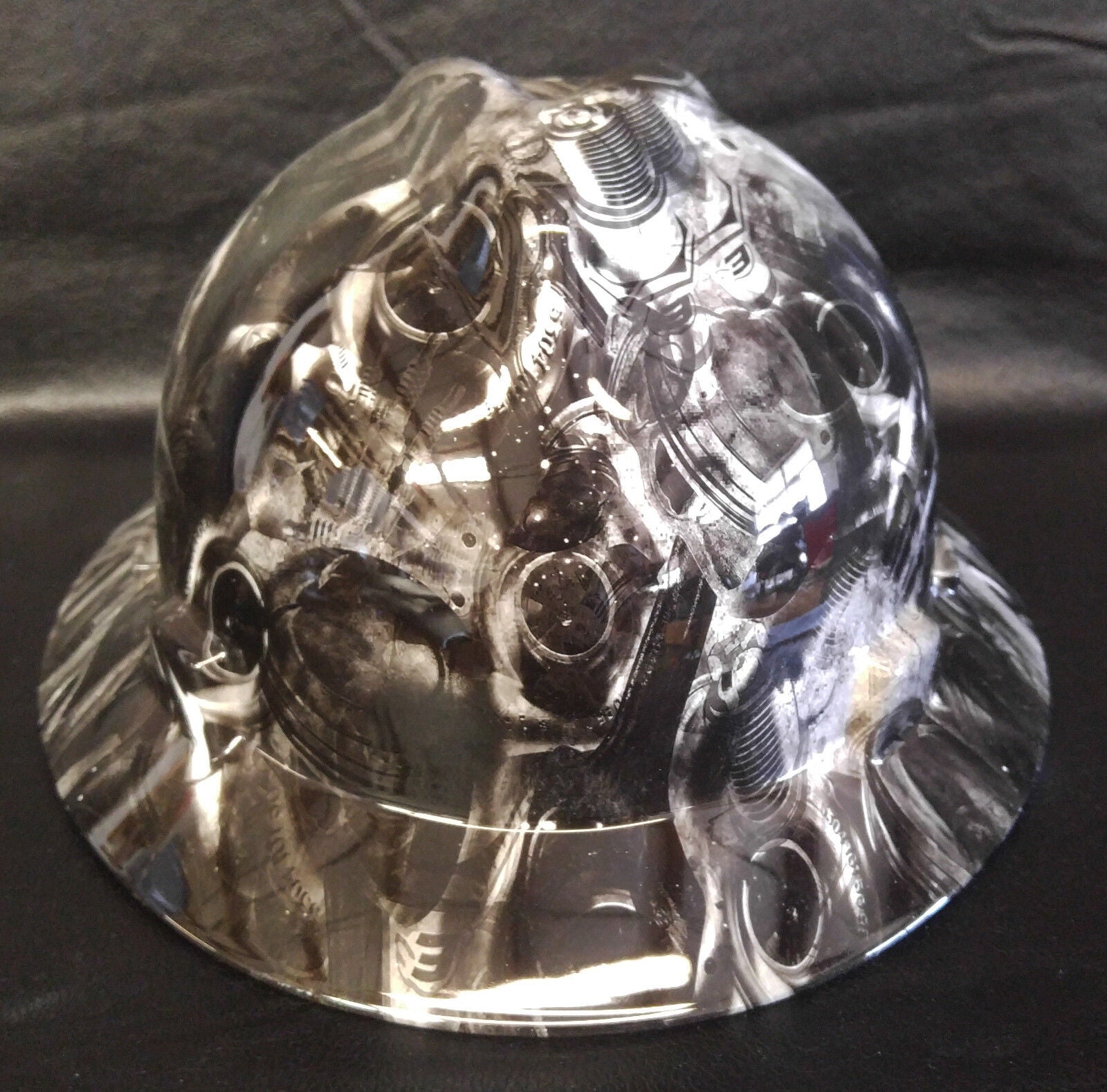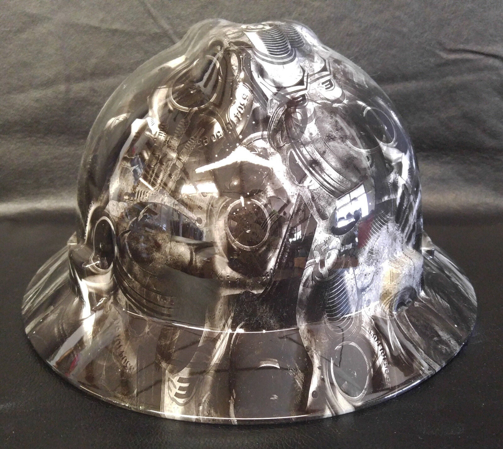 Hydro Dipped Hard Hat MSA Full Brim White Turbos & Pistons