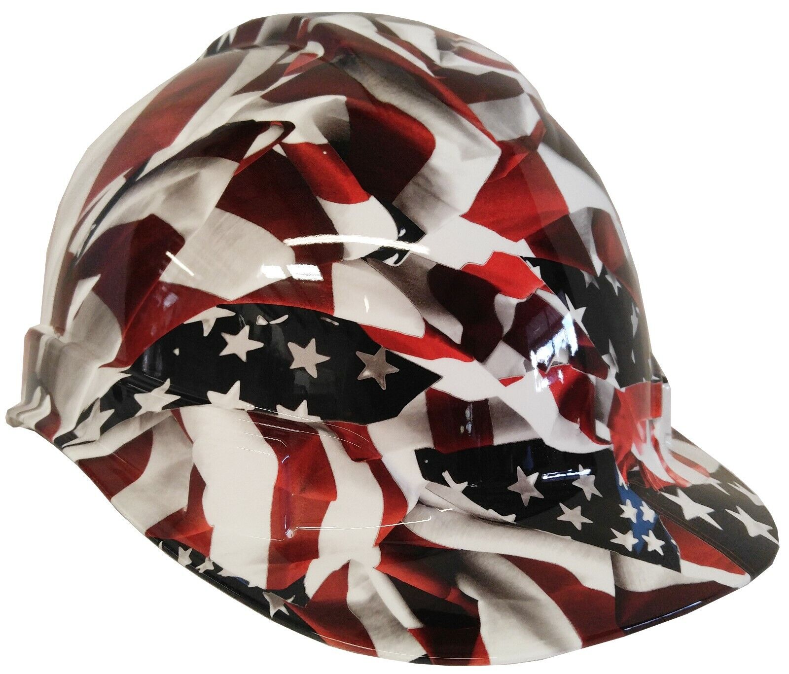 Hydro Dipped Hard Hat Ridgeline Cap Style Custom American Flags
