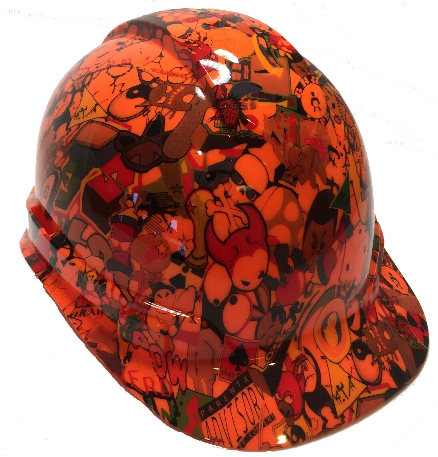 Hydro Dipped Hard Hat Ridgeline Cap Style Custom HiVis Orange Sticker Bomb