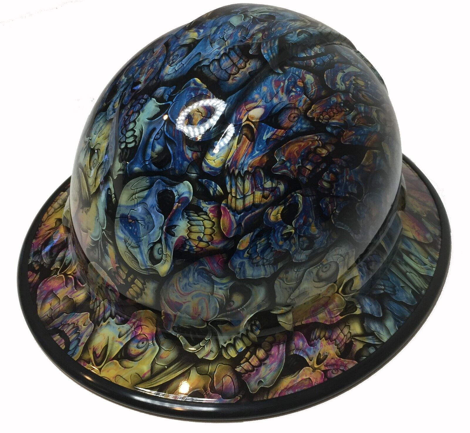 Hydro Dipped Hard Hat Ridgeline Full Brim Custom Oil Slick Insanity Skulls