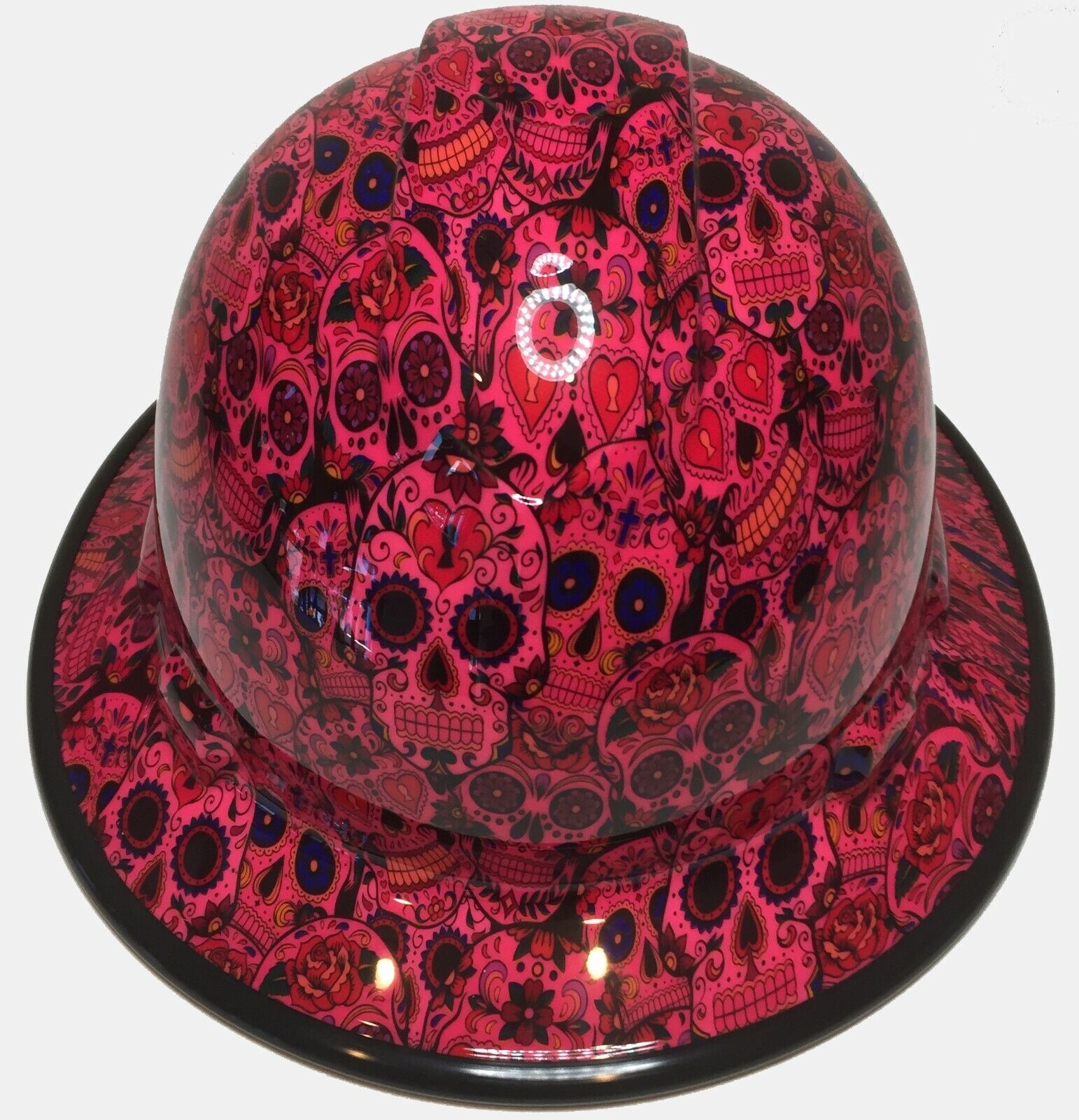 Hydro Dipped Hard Hat Ridgeline Full Brim Custom Pink Sugar Skulls