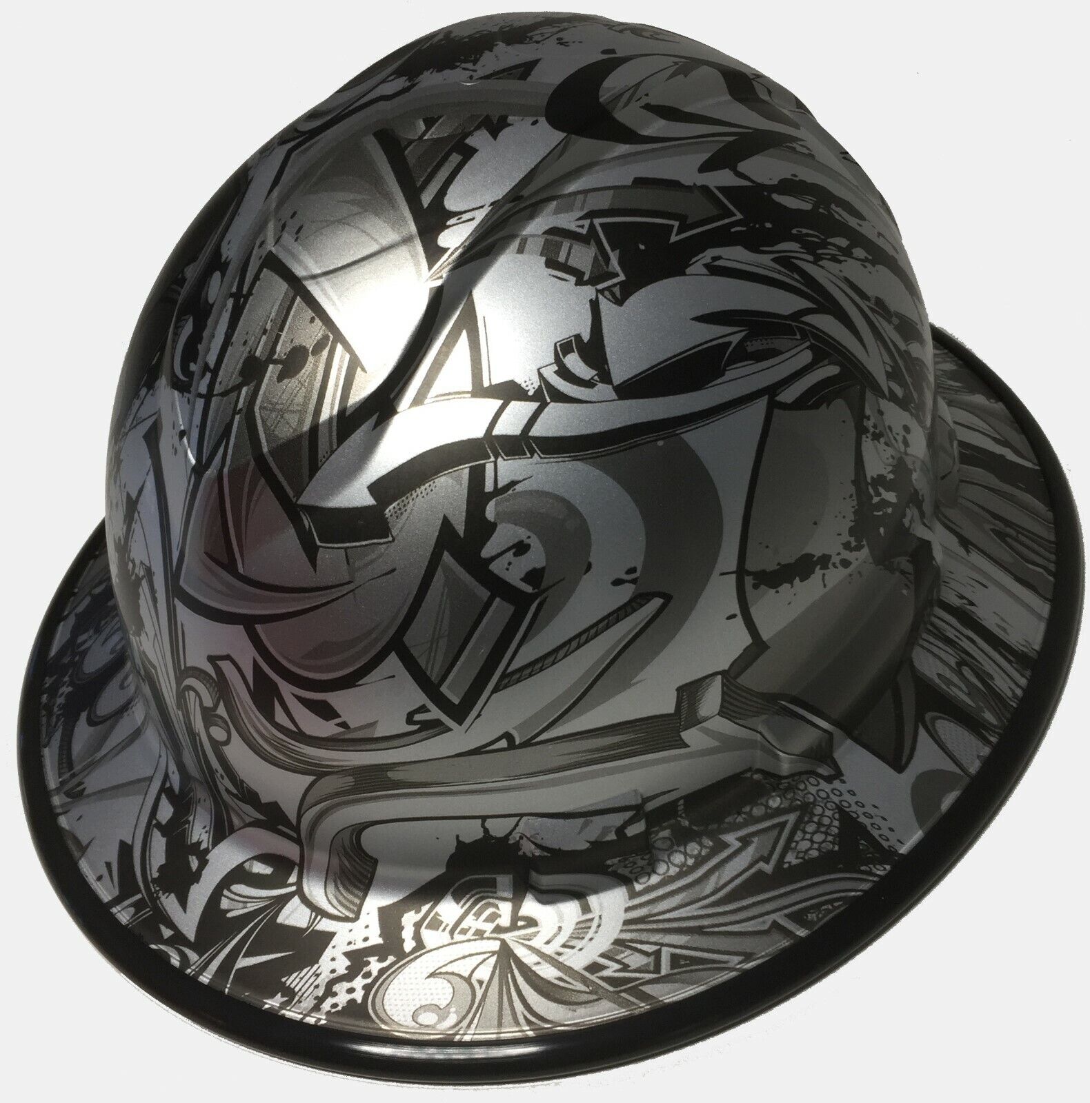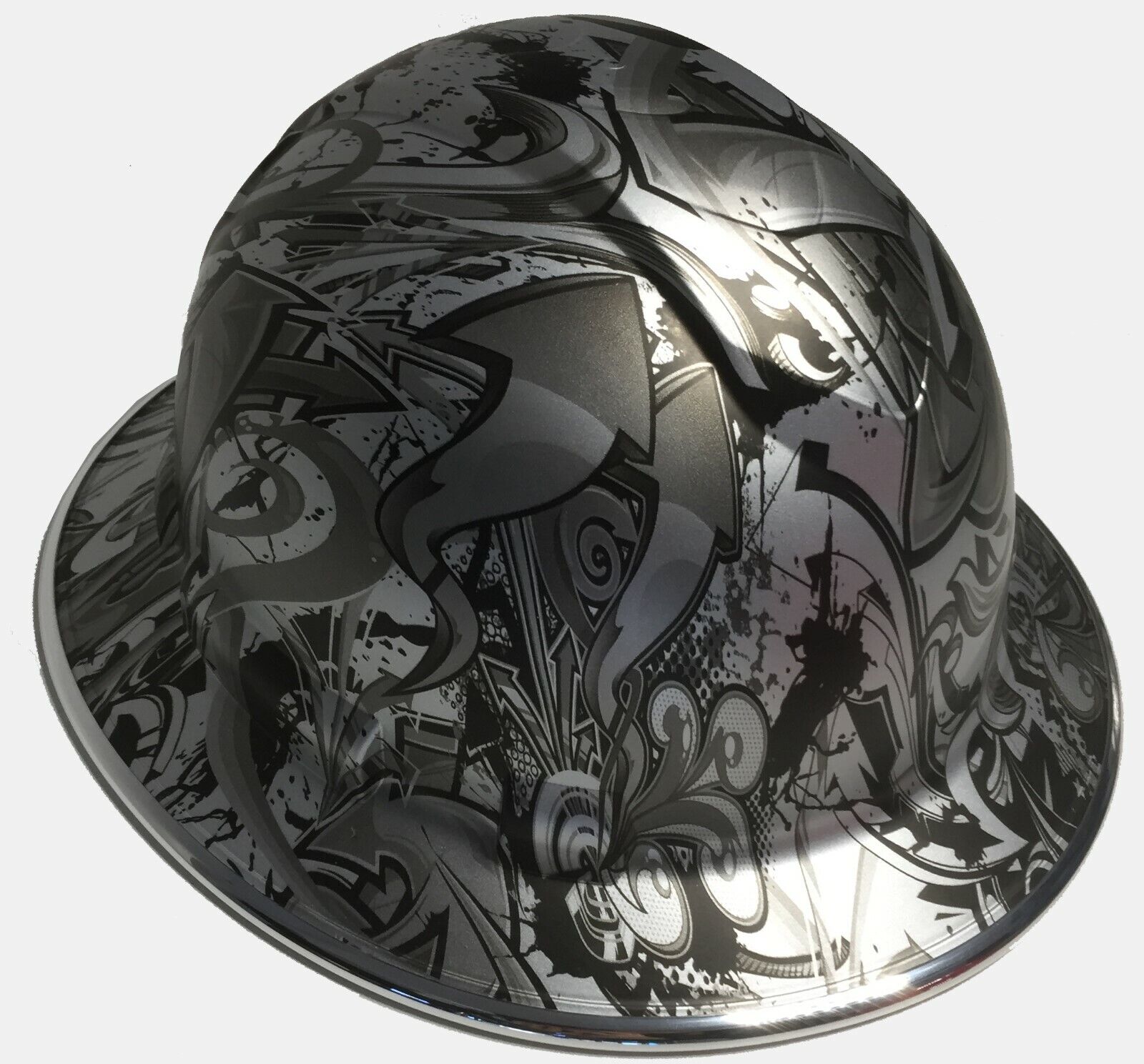 Hydro Dipped Hard Hat Ridgeline Full Brim Custom Silver Metallic Graffiti