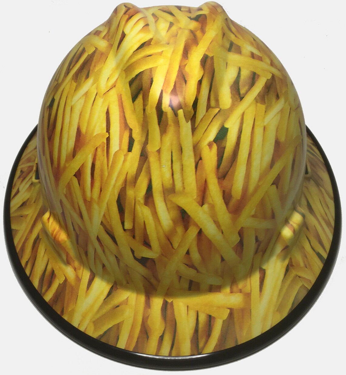 • Load image into Gallery viewer, Hydro Dipped MSA Full Brim Hard Hat Custom Fries with Black EdgeGard
